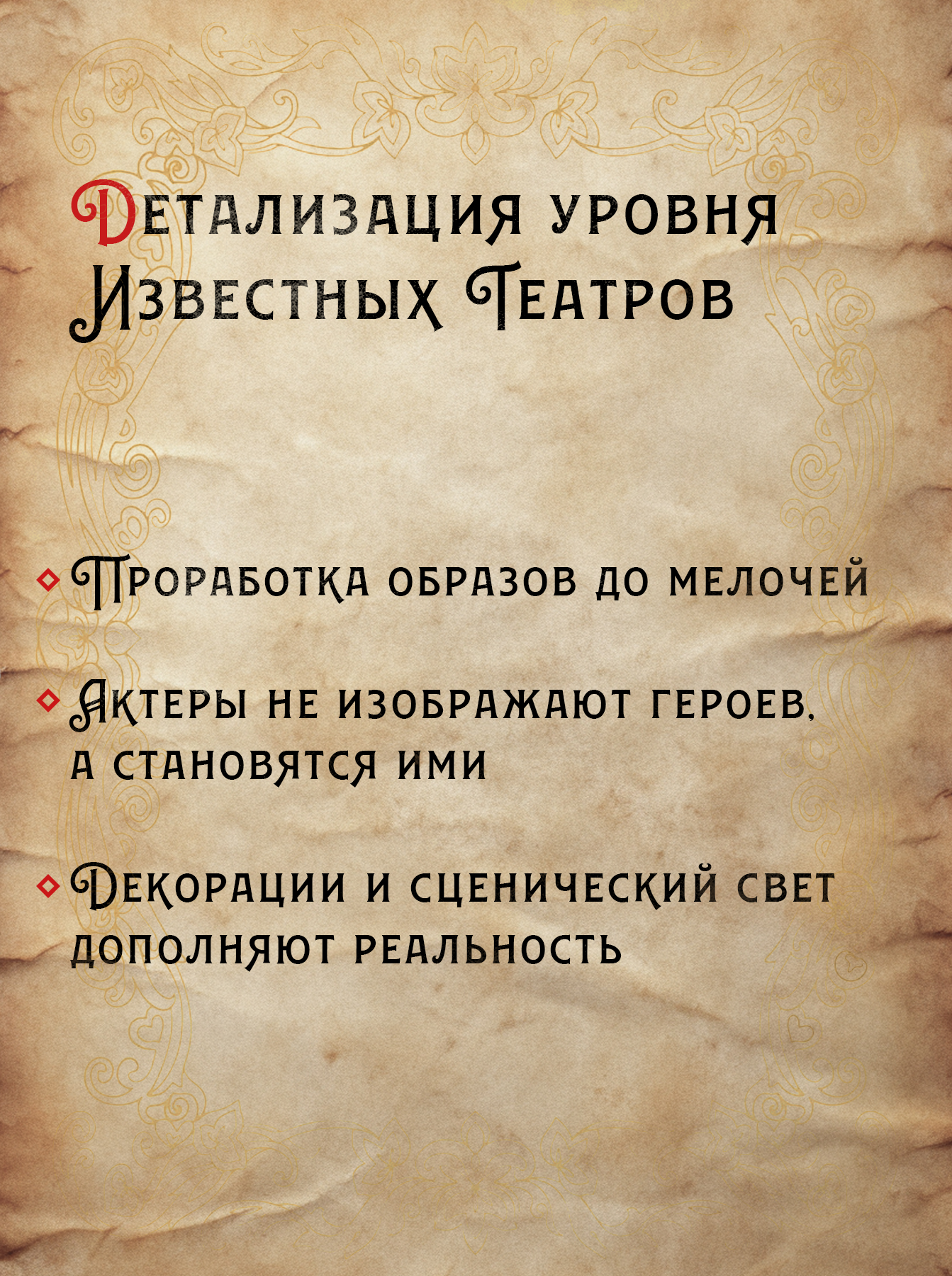 Образы и актерское мастерство героев, точечная и очень качественная детализация, декорации и реквизит, музыка, импровизация и работа с гостями — все это дарило такую атмосферу, что пронизывало до глубины души. Мы, взрослые люди, ни на секунду не усомнились в том, что попали в сказку!